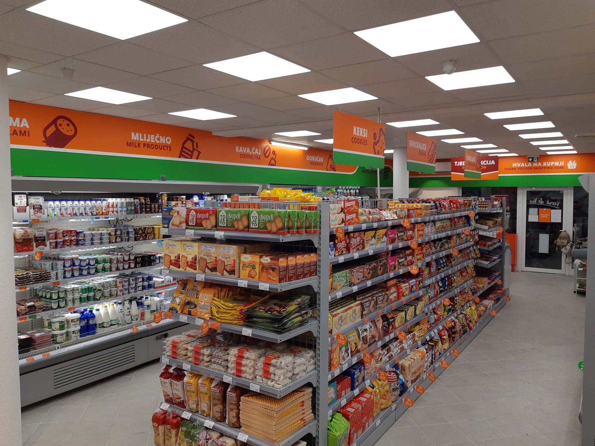 Prodavaonica nudi uslugu plaćanja režija te se računi mogu platiti pomoću 2D bar koda. Otvorenje novih prodavaonica rezultira otvaranjem radnih mjesta, a kontinuiranom ekspanzijom postajemo još dostupniji našim kupcima.