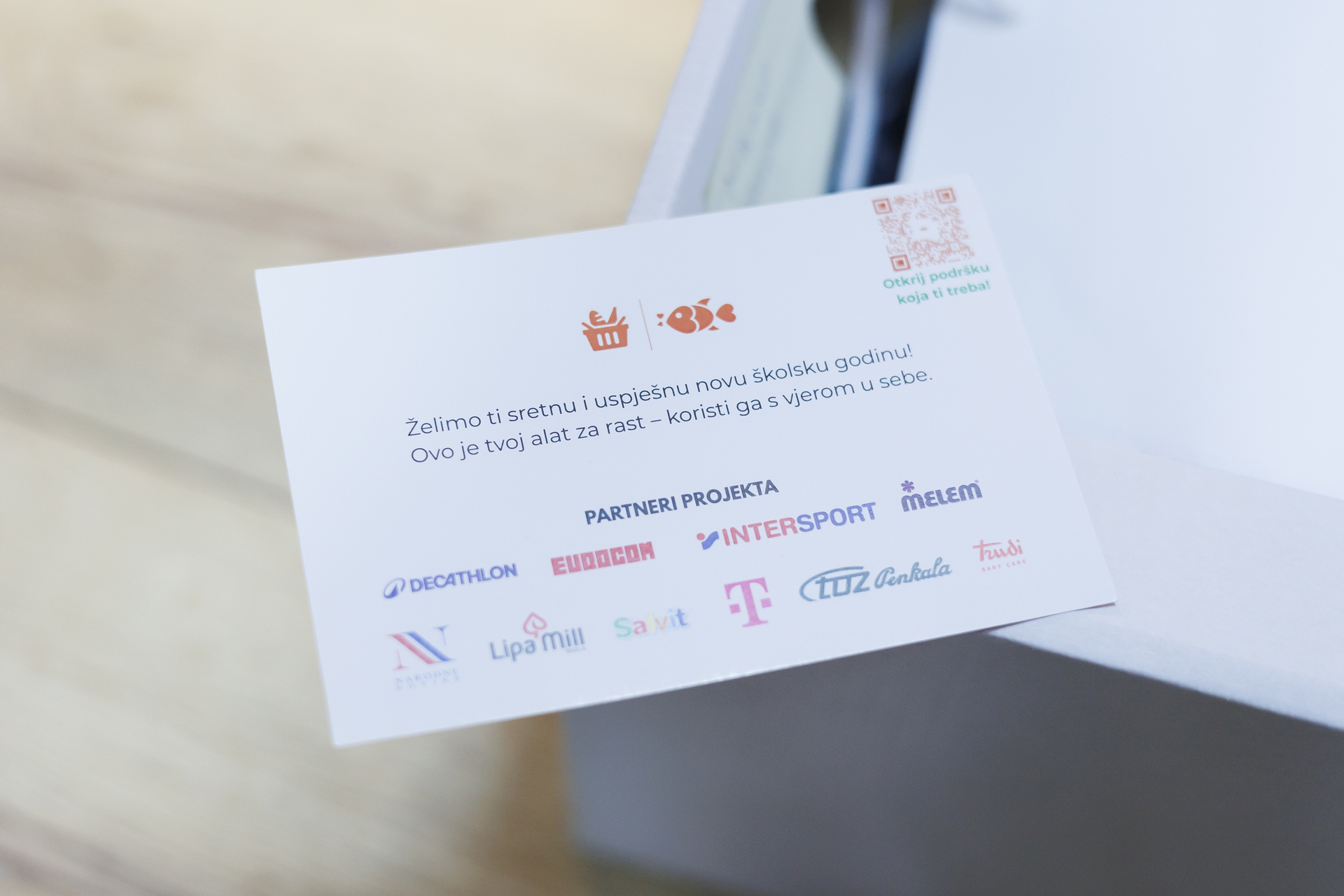Da bi djeca svih uzrasta dobila sve potrebno za novu školsku godinu, pobrinule su se tvrtke Intersport, Decathlon, Narodne Novine, Eurocom, Lipa Mill, TOZ Penkala, Hrvatski Telekom i Salvit, a znak pažnje za djecu i roditelje osigurao je Melem.